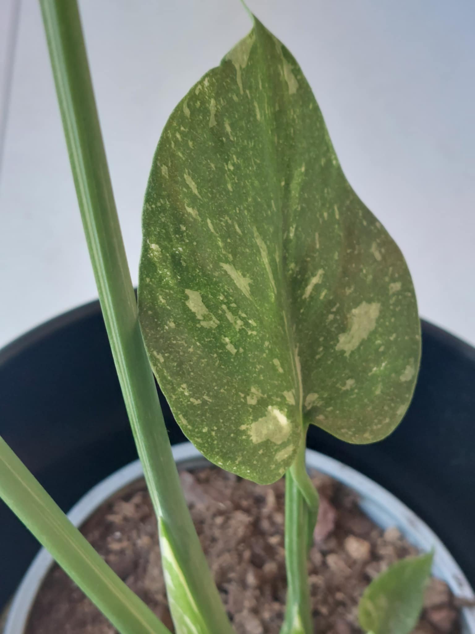 Arrosez la Monstera Thai Constellation lorsque le substrat est sec à 2 cm de profondeur. En période de croissance active (printemps-été), un arrosage 1 à 2 fois par semaine est conseillé. En hiver, réduisez l’arrosage à 1 fois tous les 10 à 15 jours, car la plante entre en période de repos. Assurez-vous toujours que l’excès d’eau s’écoule bien du pot.